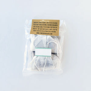 Lightly ground organic cocoa beans fro brewing a lovely cup of tea. Place one tea bag in a mug, pour boiling water in and let steep for five minutes. Sweeten as preferred. Two tea bags per package.
