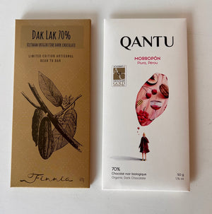 Finnia's Dak Lak 70% dark bar is Vietnamese origin with beautiful fruity flavours led by raisin and plum, highlighting the notes of currants in the wine.