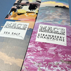 The flaky, light all natural sea salt in this bar is hand harvested off the island in Atlantic waters. The texture and flavour of this salt makes it a favourite for us and when we pair it with Tickler Cheddar it's an amazing duo. The Academy of Chocolate 2022 awarded this bar a bronze in Dark Bean to Bar Seasoned category.