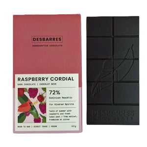 For Kindred Spirits! Single origin Dominican Republic cacao infused with raspberry and fresh lemon peel for the taste of summer all year round. A multi award winning bar from the Academy of Chocolate and the International Chocolate Awards - Americas.