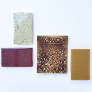A second NEW bar from SOMA. Bananas that are perfectly ripe, blended into a fresh milky milk chocolate that's not too sweet. Get your smile on by letting a piece of dreamy creamy banana milk chocolate melt in your mouth.