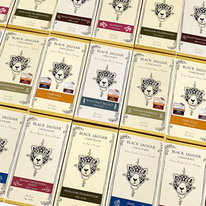 Most of the bars are made with cacao shade-grown in the region of the Bosawás Biosphere Reserve in Nicaragua, a tropical rainforest hosting enormous bio-diversity. The tasting notes are passion fruit, pineapple, coffee and kiwi with some tannic. The one origin exception is the Heirloom  Preservation 77% bar., also from Nicaragua however the beans are gronw on a different estate. Recently Black Jaguar added 2 Mexican origin bars, just added to our assortment so check them out!