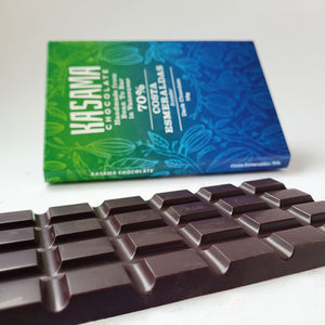 The single estate cacao beans used to make this bar are grown in Emerald Coast in Northern Ecuador. The family owned farm grows unique strains of native Ecuadorian "Nacional" cacao, with flavour notes of cassis, oak and red wine.