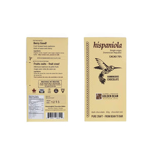 Hummingbird Chocolate Makerhas won multiple awards for the Hispaniola 70% bar year over year since its creation, including being voted the best chocolate in the world by the Academy of Chocolate in 2016! Made with organic cacao beans by farmers in the lush central highlands of the Dominican Republic. A fruit forward bar with tasting notes of raisin and cherry we love pairing this bar with Port!