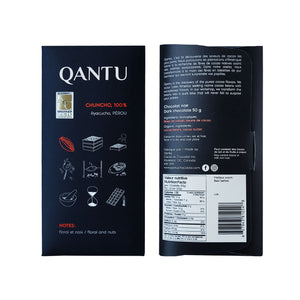 Constantly seeking cocoa beans in Latin America with the purest cocoa flavour, Qantu has chosen beans from Ayachucho, Peru for their 100% bar. A unique and soft cocoa grown on wild trees over 60 years old, it has floral and nut flavour notes. A Gold winner at the Academy of Chocolate in 2018, this bar is intended for the chocolate purist.